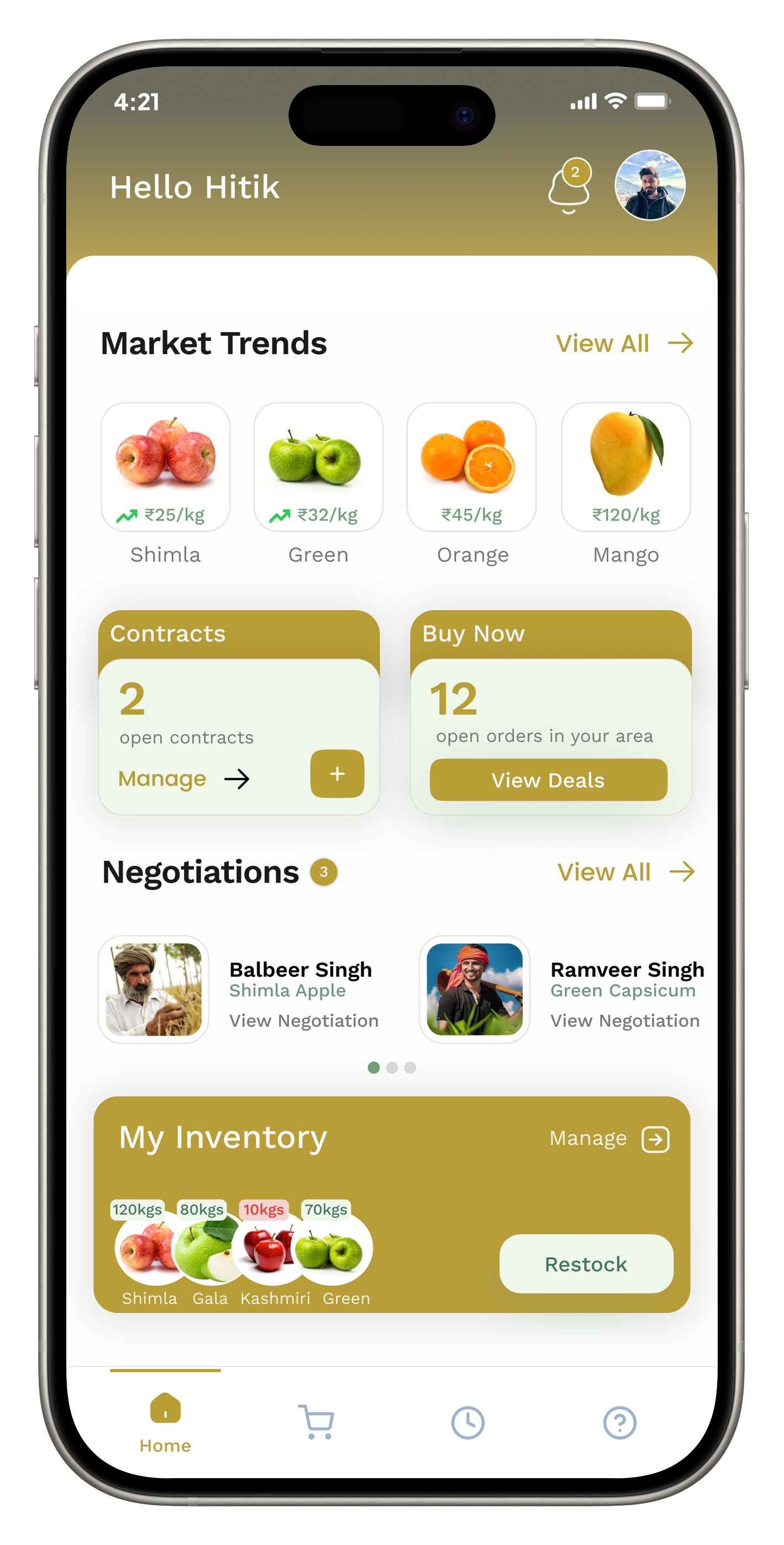 - • Monitor real-time price trends for different varieties and make informed selling decisions.