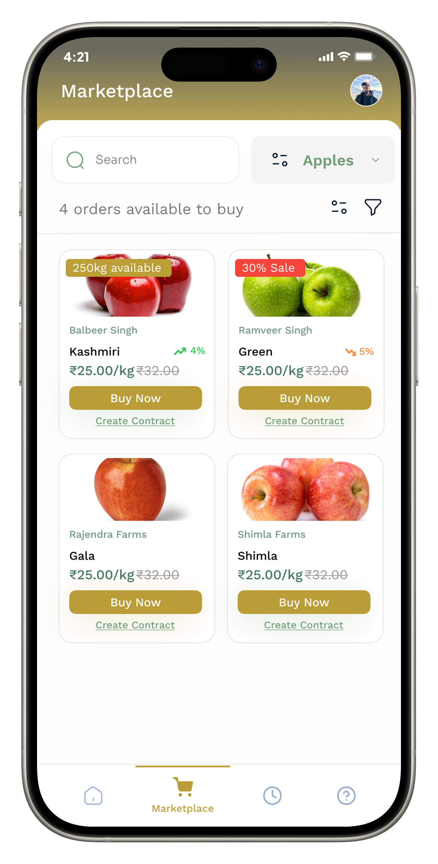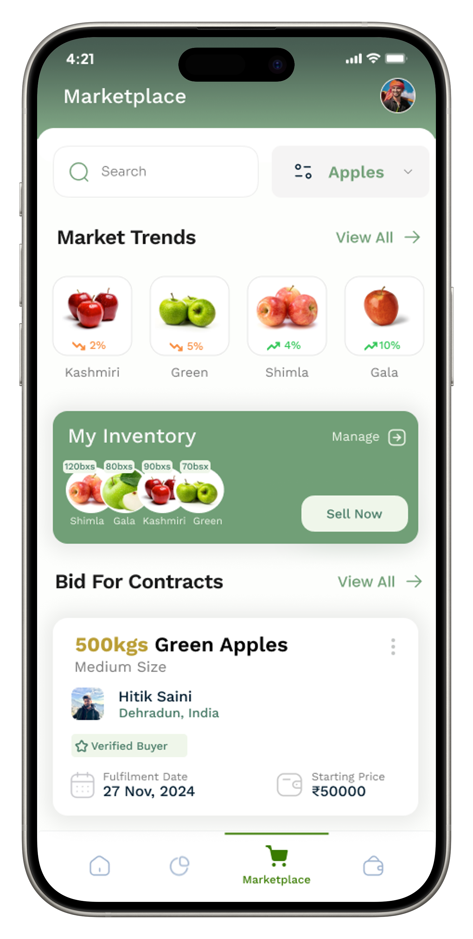 - • Get competitive offers for your produce by listing directly on the marketplace.